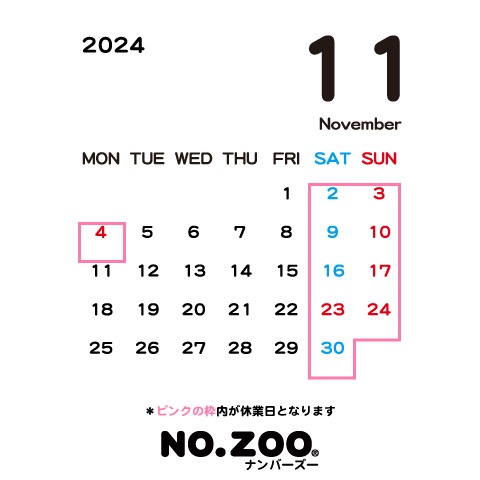 2024年11月のショップ休業日は